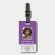 Púrpura - Un diseño básico de negocio que destaca los logotipos de su oficina y el nombre del empleado. Puede agregar un código de barra de exploración en la parte frontal y posterior.