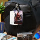 "Dark Enchantress" Un retrato llamativo con temática de fantasía muestra a una misteriosa mujer con el largo y vívido cabello rojo cayendo en cascada por su pecho y hombros. Ella usa un vestido negro profundo que se mezcla perfectamente en el oscuro y nebuloso fondo. Las alas de ángel negro se extienden desde su espalda, evocando el aura de un ángel caído o oscuro. El fondo representa una escena surrealista, de otro mundo, con ramas de árbol retorcidas y sin hojas, encerradas en un cielo crepúsculo lleno de púrpura, rosa y suaves resplandores, lo que sugiere un reino mágico o celeste. Una ligera bengala de lente añade un toque etéreo, realzando el ánimo místico.