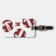 Esta etiqueta de bolso de equipaje de voleibol está diseñada simplemente con tres bolas de voleibol dispuestas al azar que tienen paneles de color blanco y marrón - personalizable con el nombre del jugador y el monograma en la parte delantera, información de dirección en la parte posterior - por katz_d_zynes