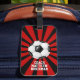 Etiqueta de equipaje de fútbol rojo y negro para uso de entrenador de fútbol o equipo con colores rojo y negro. Incluye el nombre del entrenador y/o del equipo.