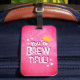 Esta etiqueta portaequipajes presenta un diseño lúgubre y vibrante con un suave fondo rosado que da una sensación de los años 90. El texto en negrita, blanco y texturizado, dice "¡Eres hermosa en un BREW!" - un divertido juego de palabras con la temática del café - con una corona dorada inclinada sobre la palabra "Eres" y estrellas blancas dispersas añadiendo un toque caprichoso. El conjunto es luminoso, alegre y perfecto para los amantes del café y de los adorables accesorios. ✨ 💖