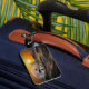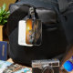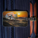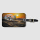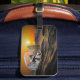 Esta etiqueta de equipaje tiene una estatua en una botella.