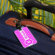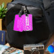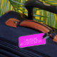 monograma con estampado de estrella rosa y blanca y etiqueta de equipaje personalizada con correa de cuero