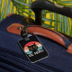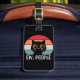 Diseño de estilo retro divertido y colorido con un bonito gato negro y decoración de fondo a rayas de colores y diseño de texto "Ew, People"