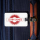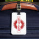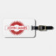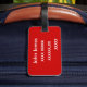 Etiqueta de equipaje personalizada con explosión roja.