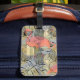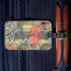 Etiqueta Para Maletas Flamencos en un fondo abstracto.