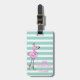 Etiqueta Para Maletas Flamingo rosa, franjas blancas de menta, princesa