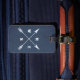 Ilustracion de brújula con flechas y decoración norte, este, sur y oeste sobre fondo de grano azul