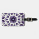 Etiqueta del equipaje de manala floral con un patrón caleidoscópico creado a partir de una acuarela y un dibujo de tinta de una flor abstracta de loto en azul, violeta y negro. En la parte posterior de la etiqueta hay nombre de personalizable, dirección y número de teléfono.