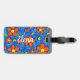 este cuadro acrílico presenta un fondo azul (agua) con flores naranjas