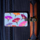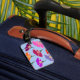 Etiqueta de equipaje floral colorida