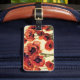 © Shirley Novak/Apple salvaje. Una imagen de flores rojas decorativas. Los troncos, los brotes de flor, y las hojas se pueden ver en la imagen. Un fondo apagado blanco termina la imagen.