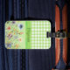 Lávese su equipaje cuando viaje con las etiquetas de equipaje "Flores silvestres en el verde". flores silvestres de bonito colocadas sobre un fondo verde y gingham verde y blanca parecen tejidos similares.