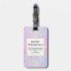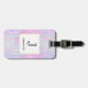 Una etiqueta para el equipaje con un patrón de fondo abstracto. Las acuarelas rosas moradas y azules componen este diseño artístico que presenta formas rectangulares verticales sobre un fondo suave de mosaico. Un cuadrado sobre la parte superior con un falso borde de Relieve metalizado dorado, tu texto personalizado dentro.