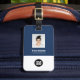Personalice fácilmente esta etiqueta de equipaje de nombre de empleado del Personalizado con foto, escanear código Qr y el logotipo comercial. Un sencillo diseño de negocio en colores azul marino y blanco personalizable completamente en tamaño frontal y posterior, sans-serif fuentes básicas y modernas y un aspecto profesional y claro. Perfecto como Gadgets de viajes de negocios para empleados, Accesorios de viaje para profesionales, Etiquetas de identificación de equipaje de seguridad de viajes de empresa, gadgets jefe para viajes de negocios. La etiqueta para el equipaje está disponible en doble cara o en un solo lado con ranura para tarjeta. Sin orden mínima.
