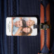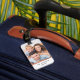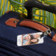 Etiqueta moderna de portaequipajes fotográficos de la familia.