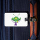 Spot your bags easily with this funny green alien luggage tag. Featuring a vibrant goofy martian design, this durable travel accessory ensures your suitcase stands out at the airport. This whimsical character art tag is a practical and fun gift for frequent flyers who love cartoon monsters and wacky extraterrestrial themes.