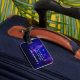 La fresca imagen del espacio exterior en esta hermosa etiqueta de equipaje viene cortesía de la NASA / CXC /JPL-Caltech / STScI y se toma bajo el "ala" de la pequeña nube de Magallanes. Se ha coloreado de azul profundo. Las palabras inspiradoras originales para los aventureros del espacio dicen: "Si no encuentras nada nuevo bajo el sol, explora más".