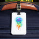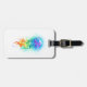 Grandes medusas de azulejo brillantes, de dibujos artísticos, con largos tentáculos en blanco, pintadas con fondo multicolor de acuarela. Mariscas arcoiris.