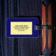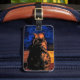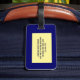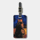 Personalice fácilmente el dorso de esta etiqueta del equipaje que ofrece un gato de oro, anaranjado y marrón magnífico de la concha que se sienta en una almohada roja, mirando fijamente hacia fuera la ventana en un cielo azul de medianoche. Ella echa una sombra en el windowsill de madera coloreado oro. ¡Haga que su equipaje se destaca en un carrusel del aeropuerto con diseños únicos de la etiqueta!
