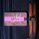 El purpurina violeta de vidrio esparce el nombre del monograma blanco y la etiqueta del equipaje inicial. Su nombre personalizado y su monograma están escritos en un guión elegante con letras a mano con un fondo rosado. Puede cambiar el color del texto y el estilo y el tamaño del tipo de letra mediante la opción personalizar. ¡Un regalo perfecto de cumpleaños o Navidades!