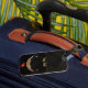 Este diseño dominante en negro tiene el ilustracion de un gran ilustracion de tiburón que da miedo y que sigue a un pequeño pez rojo. Se puede personalizar el texto predeterminado de "peces grandes".