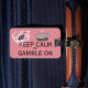 Guarde la calma y continúe con los viajes de Las Vegas o el juego como usted viaja con una etiqueta linda del bolso del equipaje de Las Vegas para los que amen vida nocturna del casino en la tira en Nevada. Fondo rosado bonito.