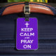 Etiqueta Para Maletas Guarde la calma y ruegue en púrpura