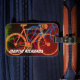 Un collage gráfico de bicicletas de color en un fondo abstracto, con nombre personalizado... para ese ciclista genial.