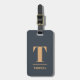 Elegante diseño de etiquetas de equipaje totalmente personalizable con fondo azul profundo, audaz pardo monograma.