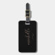 Etiqueta moderna de equipaje negro con nombre falso de guión de oro y batido. El nombre y la dirección se pueden agregar en la parte posterior.