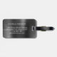 Etiqueta para equipaje personalizada con estilo moderno y elegante, guion de nombre inicial de monograma, metal negro. Este diseño presenta un primer nombre en una bonita caligrafía con cola de florituras (o tipografía) con monograma inicial, nombre completo, información de dirección sobre fondo de lámina metálica falsa negra. Estas son fáciles de personalizar. Regalo femenino elegante para boda, cumpleaños número 16, despedida de soltera, graduación y para cualquiera que ame el estilo glamoroso.