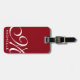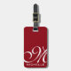Etiqueta de equipaje rojo personalizado con correa de cuero: monograma de script grande y nombre