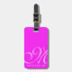 etiqueta de equipaje rosa personalizado con correa de cuero: monograma de guión grande y nombre