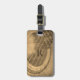 Esta etiqueta para el equipaje monogramado con temática de guitarra muestra la imagen de un agujero acústico de la guitarra, rosette, cuerdas y base de cuello mezclados con una textura abstracta y tono sepia - de katz_d_zynes