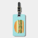 Esta etiqueta para el equipaje incluye un delicioso ilustracion personalizado de una hamburguesa. La hamburguesa está hecha de carne, lechuga verde, tomates rojos, cebolla, trozos de queso y algunos pepinillos. El bollo parece recién horneado y tiene algunas semillas de sésamo encima. En el otro lado hay un área de texto de personalizable para información de nombre y dirección.