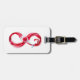 Símbolo infinito de flujo continuo de vino tinto vertiendo en vidrio de vidrio sobre fondo blanco.