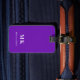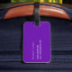 Un fondo morado. Personalice y agregue sus letras de monograma y nombre completo en la parte delantera. Su información de contacto en la parte posterior.