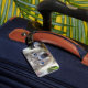 • Incluye una correa de cuero para sujetarla al equipaje.