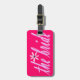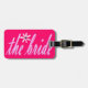 El diseño de texto de la novia con una flor diminuta. Bonita etiqueta de equipaje para los que viajan por su boda. Diseño gráfico de Alma Wad. Puedes personalizar el otro lado con tus propios detalles.