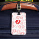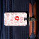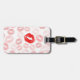 Este divertido patrón presenta múltiples huellas de lápiz labial rojo en un fondo blanco.