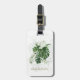 Esta moderna y elegante etiqueta para el equipaje cuenta con un ramo de hojas tropicales verdes, otro ramo anticuado en el fondo y un elegante y moderno guión.