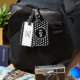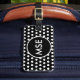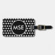 Un modelo de lunar blanco y negro moderno y elegante para el viajero, las bolsas de asas del mensajero y de la lona, mitones, monederos cosméticos y etiquetas del equipaje. Monograma o nombre opcional. Personalice su regalo añadiendo sus propias iniciales y nombre. Elija su propia fuente y color para hacerle sus los propios.