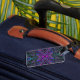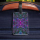 Etiqueta Para Maletas Magenta trippy, mariposa abstracta azul y verde