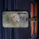 Este león macho está vigilando a su alrededor. Tal vez él cuidará tu equipaje hasta que lo recojas. Cabeza de león macho y hombros vistos sentados en la larga hierba verde. Deja que esta etiqueta te ayude a escoger tu propio equipaje de entre todos los que parecen similares.