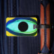 Etiqueta de maletas de la buena suerte de los ojos malvados. Diseño de ojos malignos de color acuático con texturas y filtros coloridos. Resumen del patrón de ojos malignos.