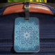 Los tonos azules crean una bella mandala en esta etiqueta de equipaje. ¡Encuentra tu bolso de inmediato!