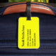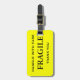 Etiqueta del equipaje con frágiles, maneja con cuidado, gracias. Texto negro sobre fondo amarillo. ¡Personalizable. Personalice su nombre e información utilizando las plantillas más sencillas. El color de fuente, el estilo de fuente y el tamaño de fuente son personalizables.