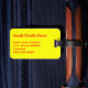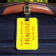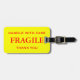 Etiqueta del equipaje con frágiles, maneja con cuidado, gracias. Texto rojo sobre un fondo amarillo. ¡Personalizable. Personalice con su nombre y la información de dirección utilizando las plantillas más sencillas. El color de fuente, el estilo de fuente y el tamaño de fuente son personalizables.