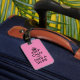 Mantente tranquilo y tómate una etiqueta de equipaje del turista de viaje. Etiqueta de equipaje personalizada para bolsas y maletas. Tipografía moderna con corona. Crea tu propia calma Manténgase tranquilo y siga con la cita. El color de fondo y el texto se pueden cambiar. Humor de viajes / chiste turístico para hombres y mujeres que viajan. También es ideal para pilotos, mayordomos o mayordomos. Ejemplo rosa.